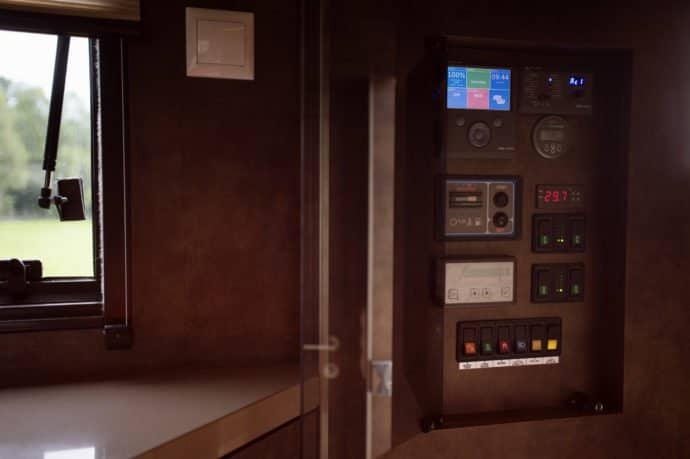 All these appliances: 2.5kW air conditioning under floor heating pumps; ceramic hob cooking, and the luxury of home entertainment, place substantial energy requirements on the on-board electricity installation. Josef meets this requirement by choosing to equip his luxury horse trucks with Victron energy systems – so that demanding owners will not be let down. He says what he likes about Victron products is that they are easy to use, and easy to install; they integrate well with each other, and with the electrical provision already installed on the base truck.