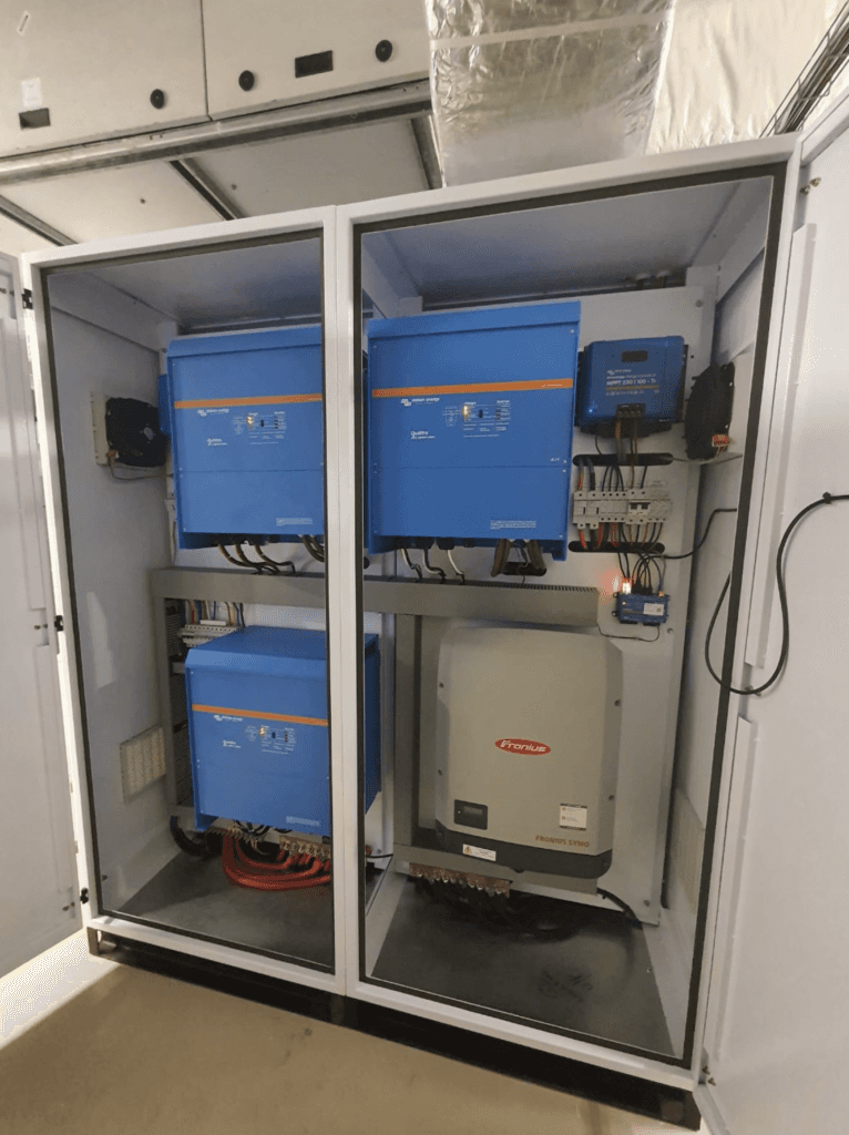 The substantial system was supplied and installed by Solarvest who have installed over 200 systems in the province and elsewhere around the country over the past decade. They are Victron Authorised installers and well-known experts in large Victron installations.
