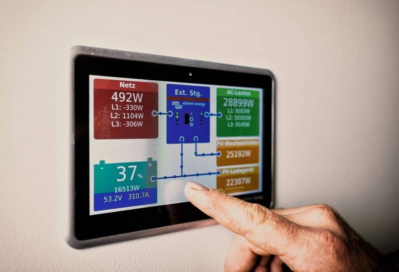 The Mooshof has two interconnected solar power systems connected by three MultiPlus inverters/chargers, so that energy surpluses and deficits can be balanced between the two systems. This is a decisive step towards total autonomy, which already covers more than 90% of the electricity demand today.